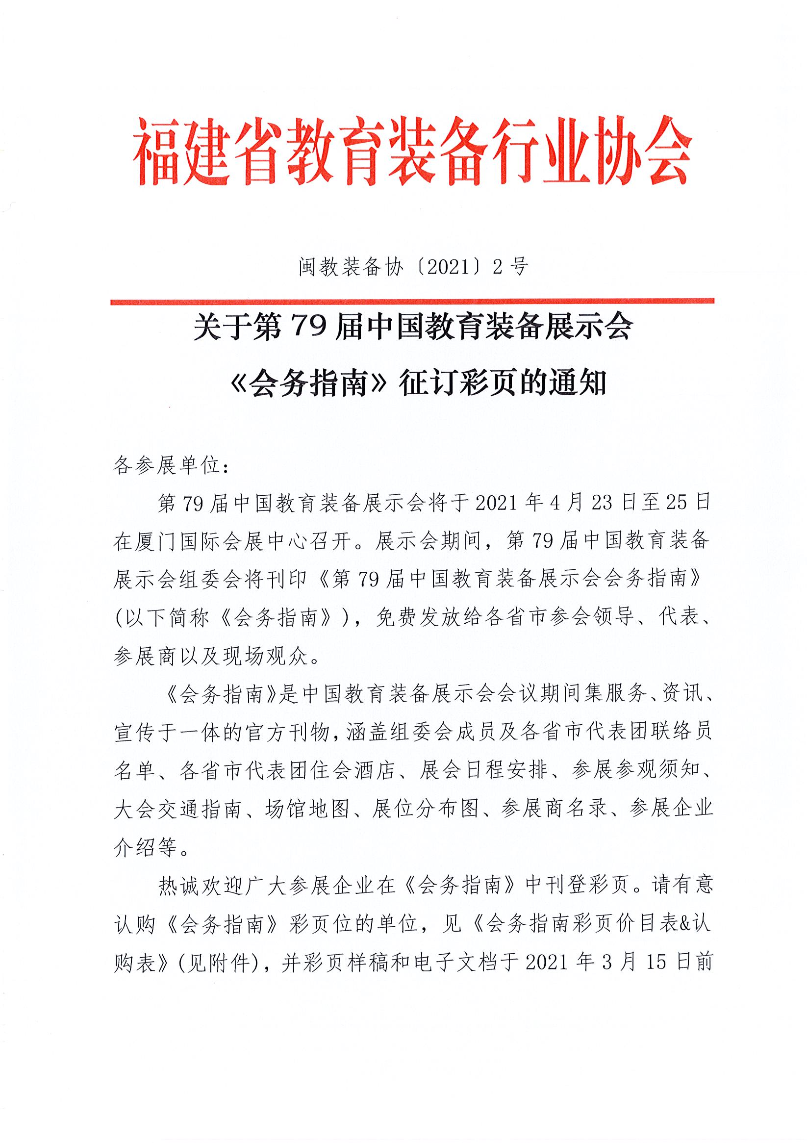 關于第79屆中國教育裝備展示會《會務指南》征訂彩頁的通知
