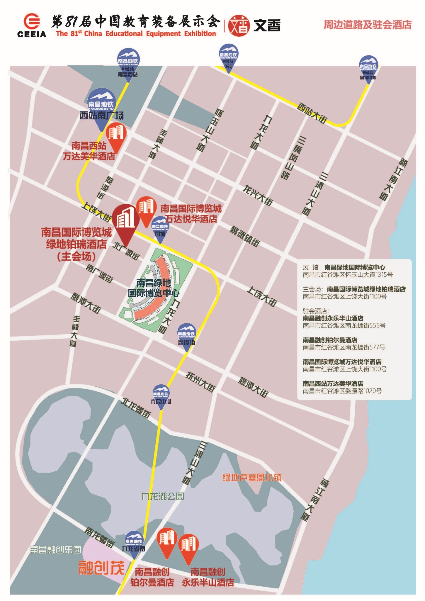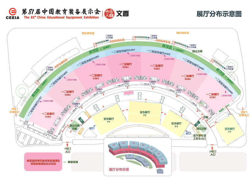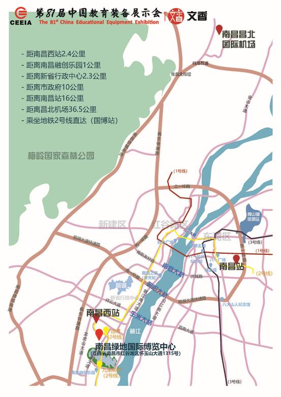 2.展示地點:南昌綠地國際博覽中心,乘車指南、展館及賓館交通示意圖、展廳分布示意圖見附件1、2、3。