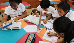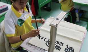 老師不僅用展臺展示自己的書寫過程,還會隨時將展臺從講臺移動到學生的座位上,展示學生書寫過程。 |